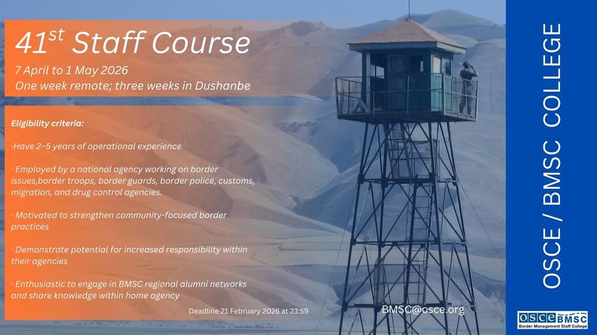 The OSCE Border Management Staff College (BMSC) announces the 41st Border Management Staff Course, to be held from 7 April to 1 May 2026.