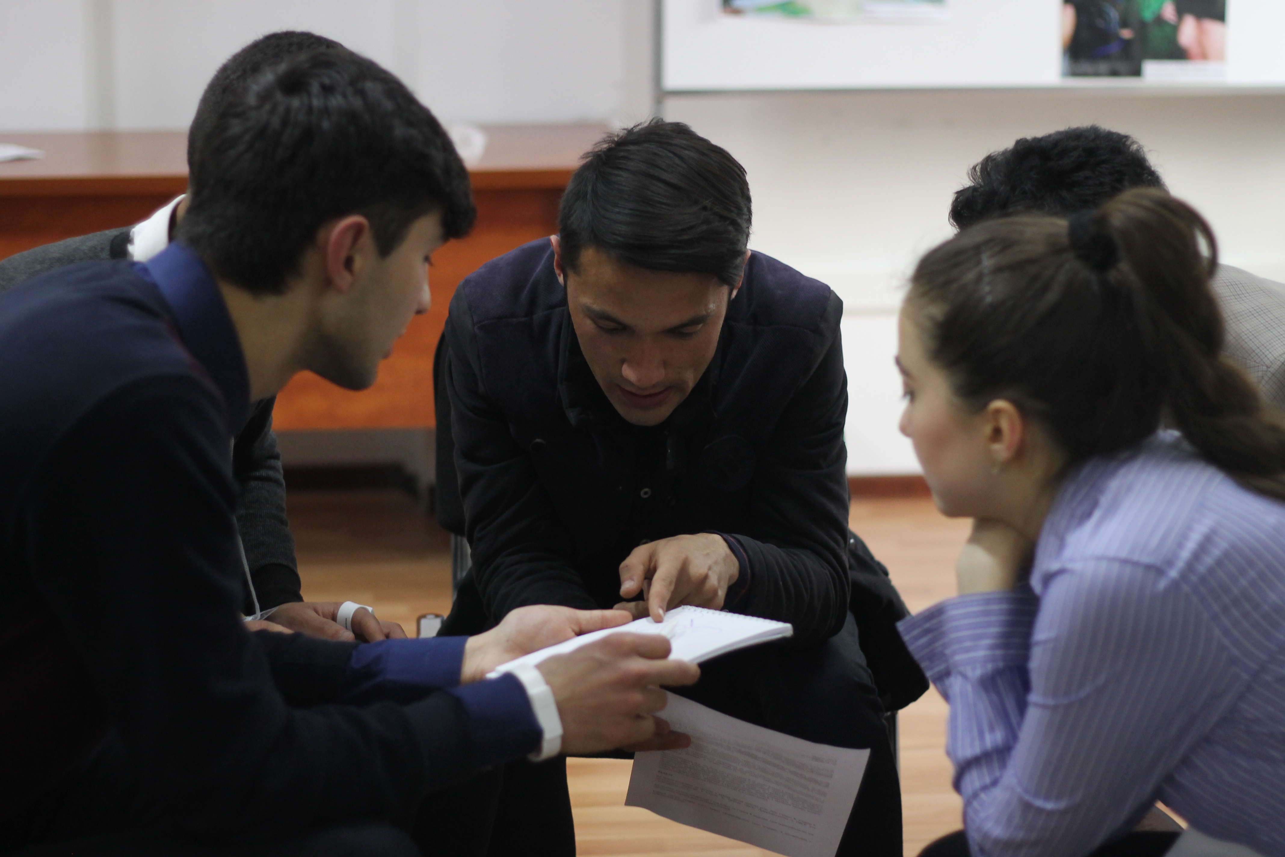 Participants in discussion during a crisis simulation, Dushanbe, 22 March 2017.
