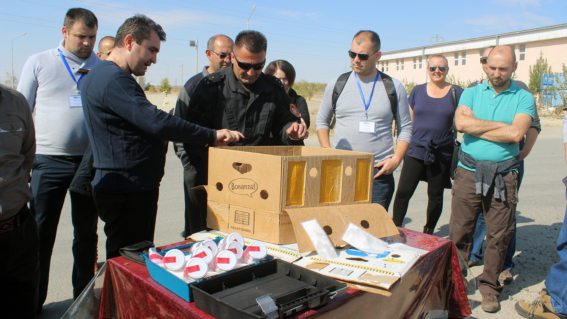 Participants of the 16th Border Management Staff Course observe K9/Drug Prevention Presentation during their visit to Tajik-Afghan Border, 22 October 2016.