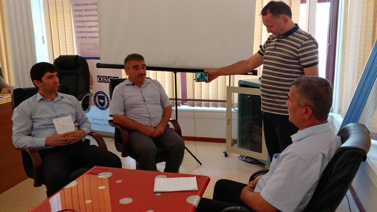 Participants of a training workshop on enhancing communication between police and the general public and media, Romit, Tajikistan, 10 August 2018.
