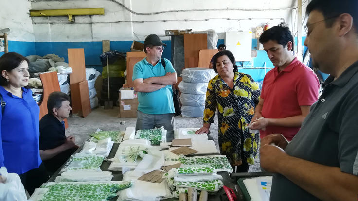 The delegation from Tajikistan visits a bio-packages manufacturing plant in Astana, 26 July 2018.