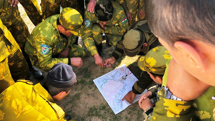 Tajik border officers during a four-week training course on sustained field operational capacities, Khalkayor, Tajikistan, 16 November 2018.