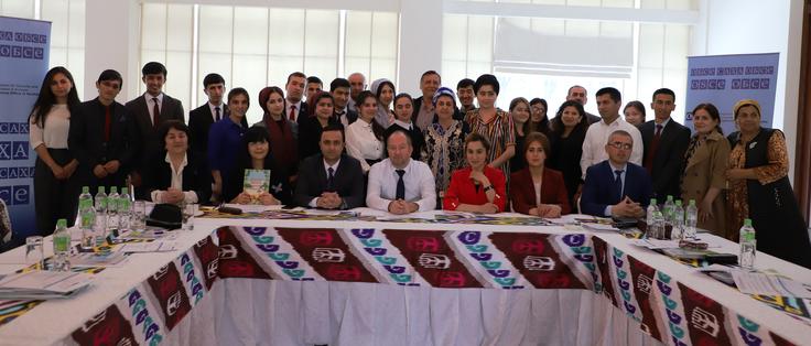 Participants of a training course on environmental journalism pose for a group photo, Dushanbe, 17 April 2019.
