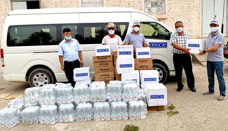 The handover ceremony of protective supplies to the regional administration of the Khatlon region to prevent the spread of COVID-19, the city of Bokhtar, 8 July 2020.
