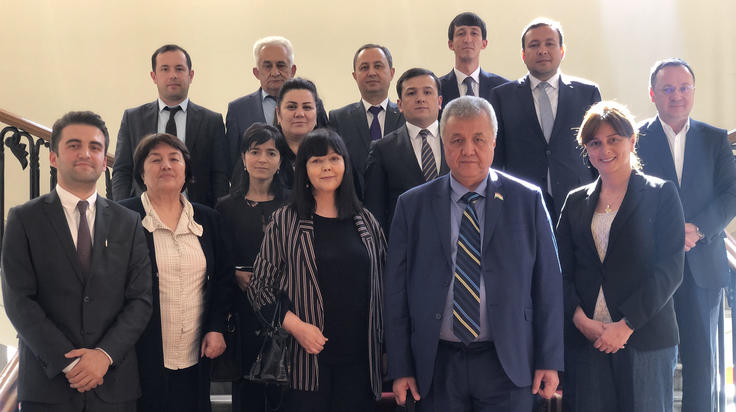 Maia Bitadze, Chairperson of the Committee at Parliament of Georgia (right) with the delegation of Tajikistan, Tbilisi, 11 May 2022