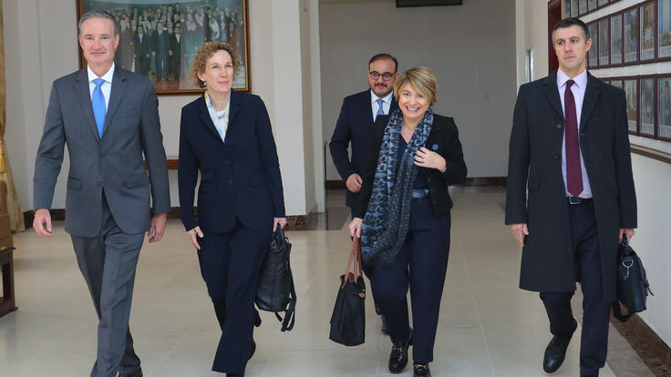 (from left to right) Ambassador Michael Carpenter, the United States; Ambassador Gesa Bräutigam, Germany; Ilgar Ibrahimli, Senior Executive Officer at the OSCE Programme Office in Dushanbe; Ambassador Christine Fages, France; Ambassador Neil Bush, the United Kingdom, at the Ministry of Foreign Affairs of the Republic of Tajikistan, Dushanbe, 5 November 2022.