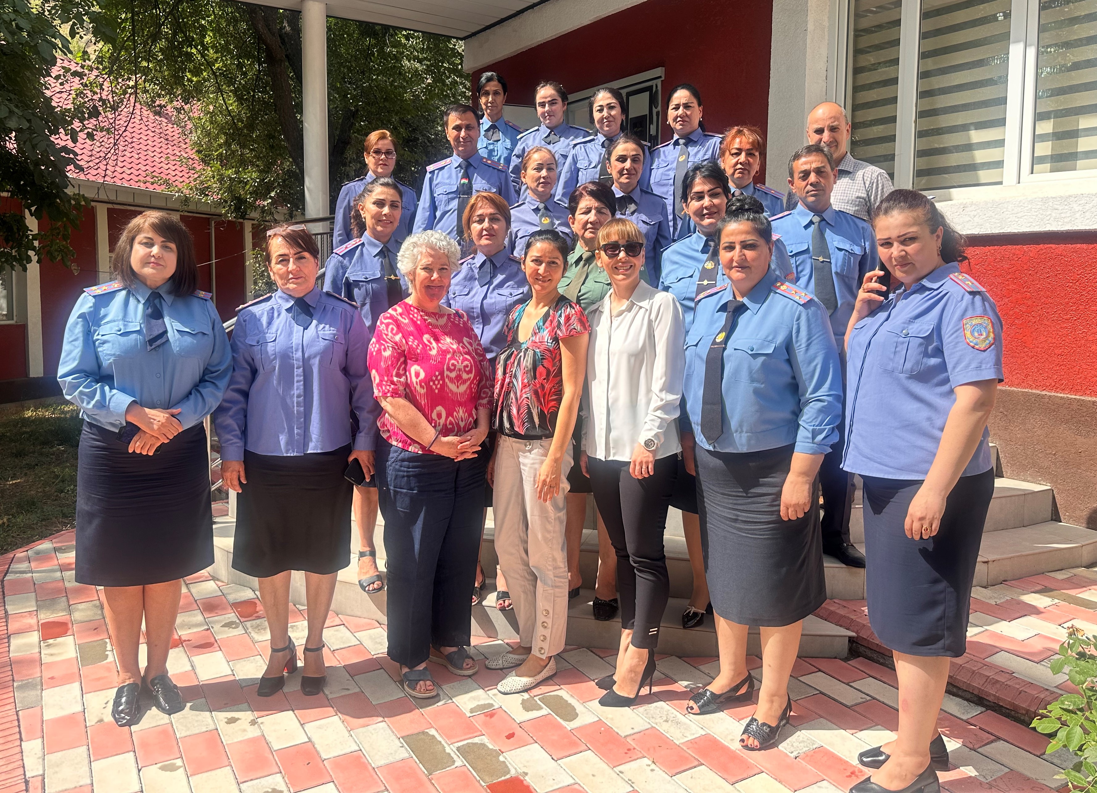 Members of the Association of Women’s Councils in Tajikistan’s Ministry of Internal Affairs and OSCE representatives pose for a group photo during a training course on gender mainstreaming in law enforcement, Romit, Tajikistan, 10 August 2023.