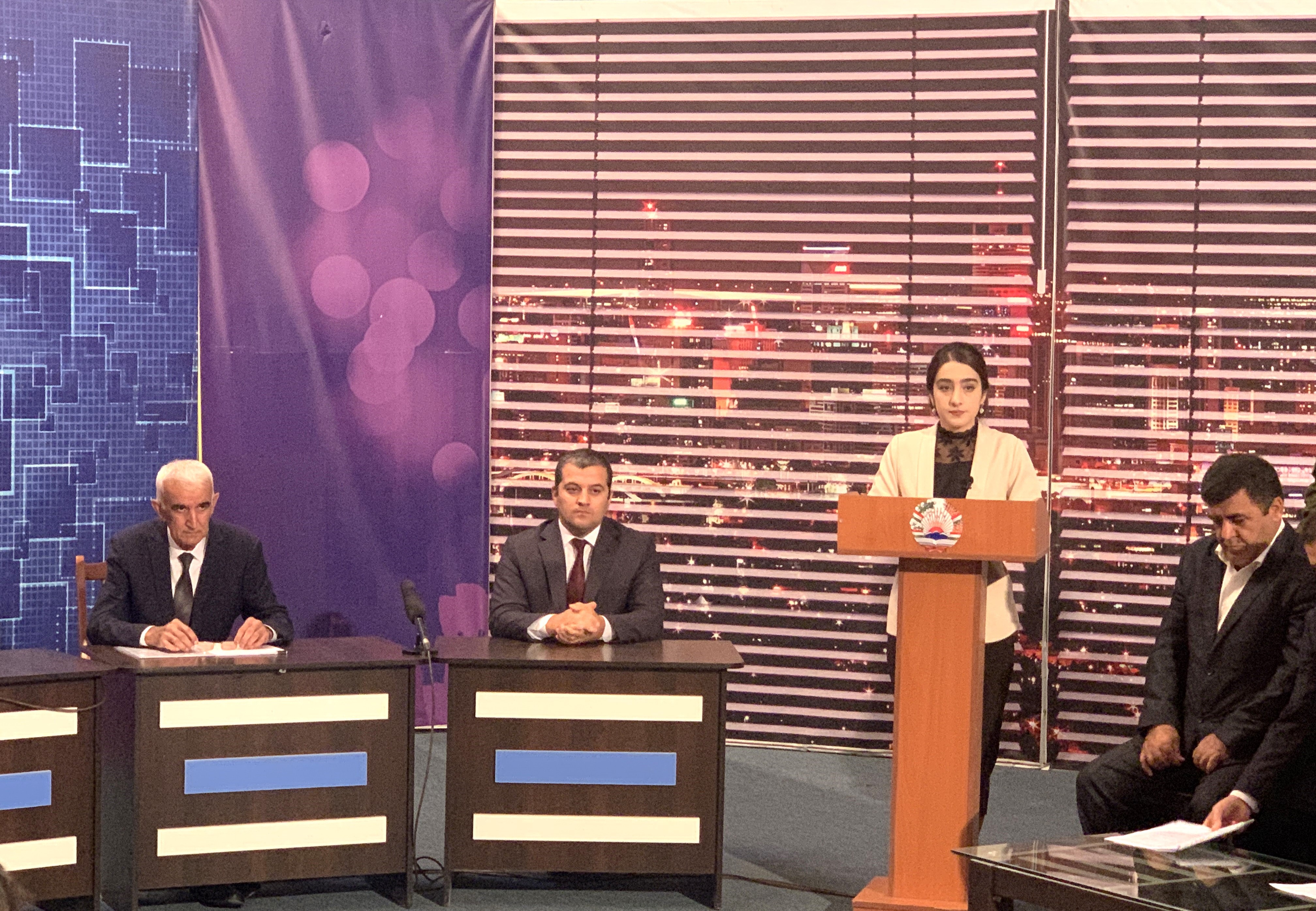 Participants of a talk show focused on the "Law on Public Participation in Ensuring Public Order," held in Kulyab, Khatlon region, Tajikistan, 28 September 2023.