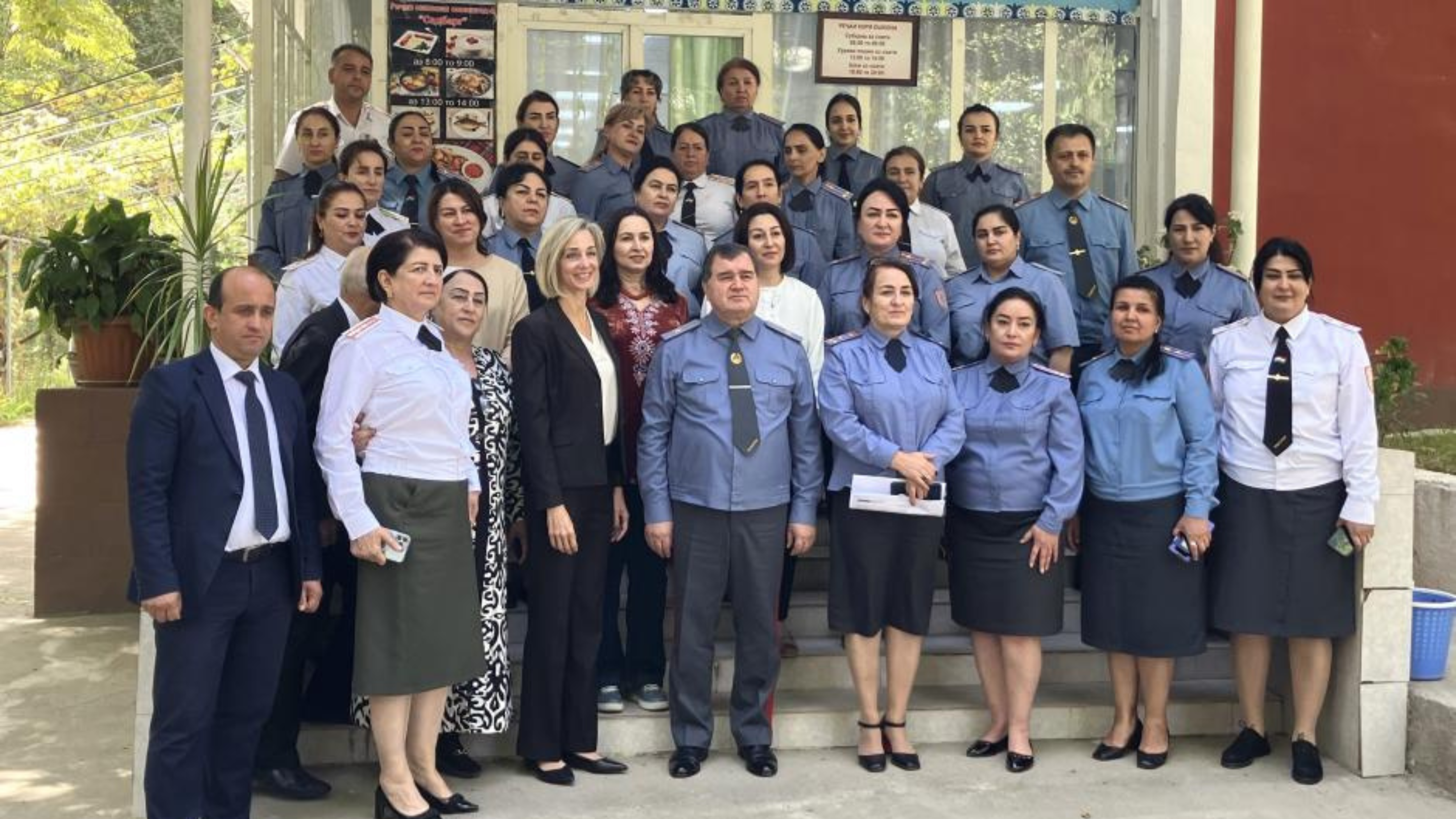 Representatives from the Association of Women’s Councils, the Ministry of Internal Affairs, the Committee for Women and Family Affairs, Gender Sensitive Police Units, international organizations and OSCE pose for a group photo at a two-day roundtable event on women’s participation in the police force, Romit, Tajikistan, 12 September 2024.