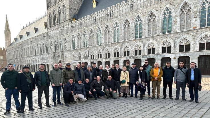 Experts from Kazakhstan, Kyrgyzstan, Tajikistan, Turkmenistan and Uzbekistan pose for a group photo during an exchange visit to Belgium, 13 February 2025.
