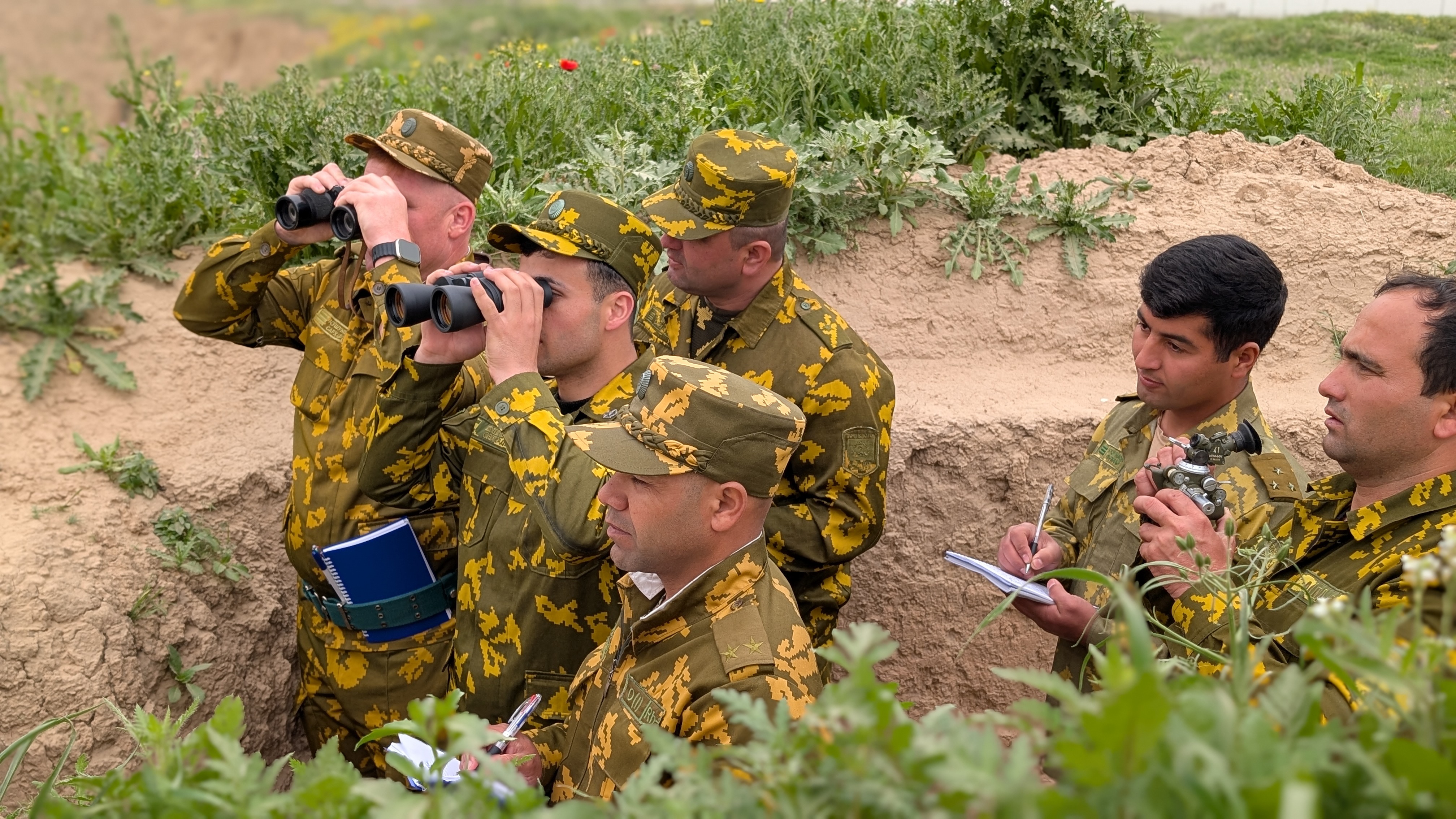 Officers of the Border Troops of Tajikistan in action during the “Tactical Field Capacity Building” course, enhancing their skills through field exercises in Panj, Khatlon region, 24 March 2025.