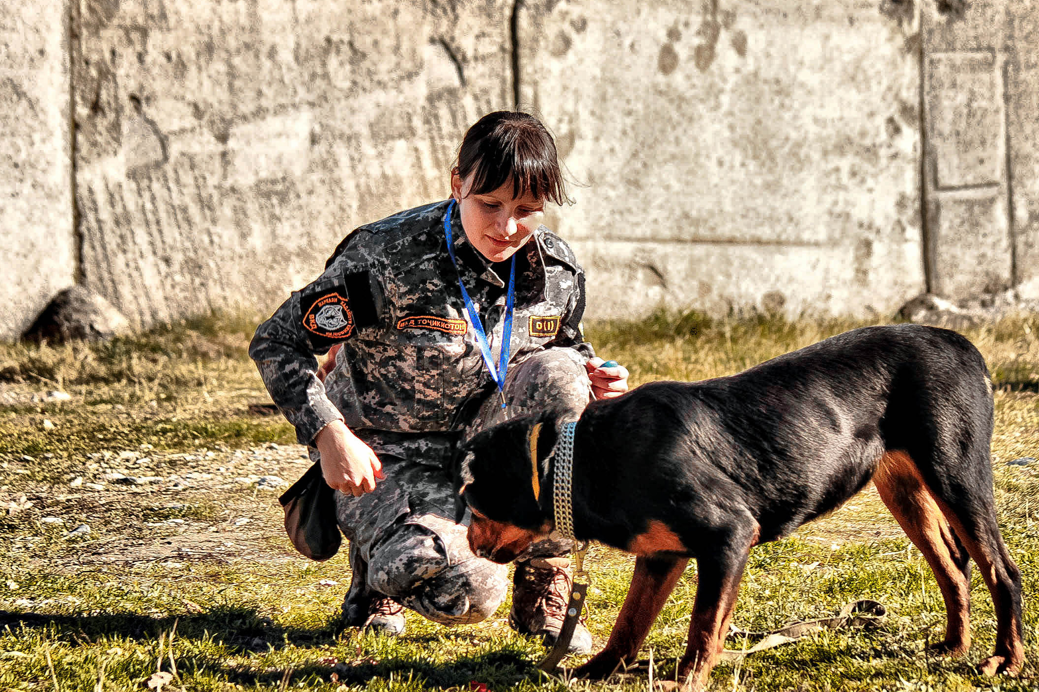 Елена Саргалиева, старший кинолог в Центре K-9 во время обучения на курсе по вопросам эффективного использования служебных собак в борьбе с терроризмом и организованной преступностью, организованном при содействии Бюро ОБСЕ в Таджикистане Душанбе, 6 ноября 2015 г.