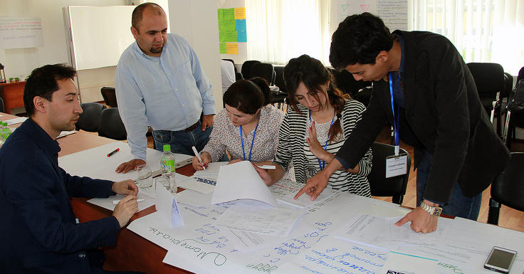 Участники в ходе пятидневного учебного курса по образованию в области прав человека для молодых активистов гражданского общества, Душанбе, 5 мая 2017 года.