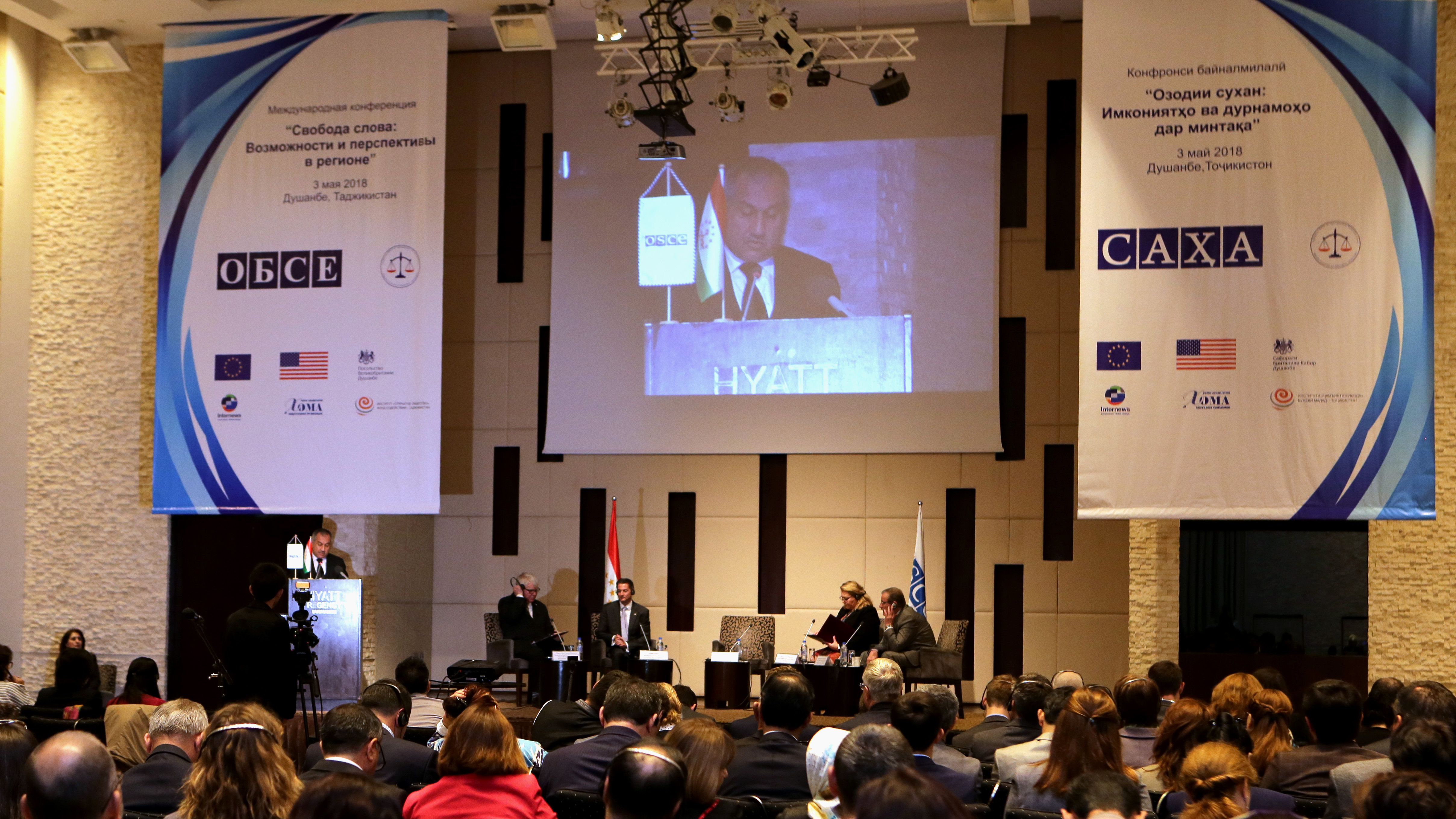 Участники Конференции, посвященной Всемирному дню свободы печати, Душанбе, 3 мая 2018 г.