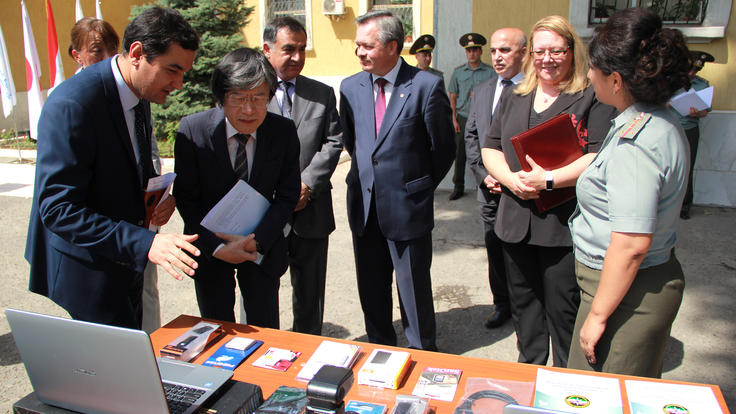 Во время передачи технического оборудования со стороны Офиса программ ОБСЕ в Душанбе пресс-центру Комитета по чрезвычайным ситуациям и гражданской обороне при Правительстве Республики Таджикистан, Душанбе, 17 августа 2018 г.