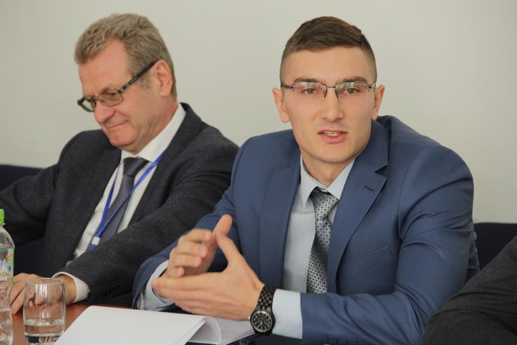 Иштван Саму (слева), эксперт полиции Венгрии и Артем Митко (справа), инструктор из Российской пограничной консультативной группы, Душанбе, 25 октября 2019 года.