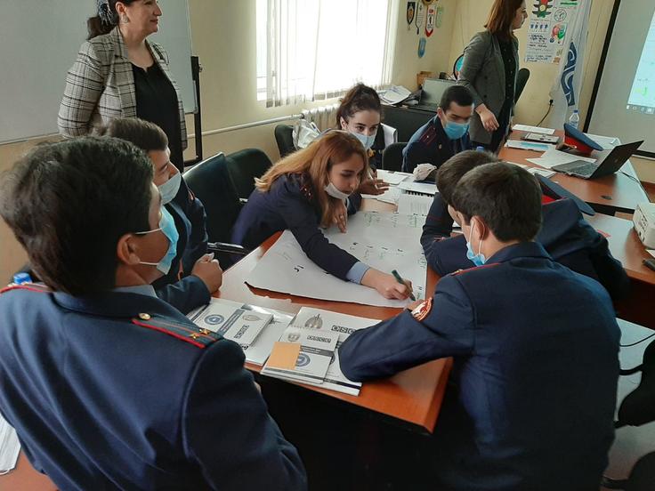 Группа молодых офицеров Агентства по контролю за наркотиками Таджикистана выполняют практическое задание в семинаре организованной ОБСЕ, Душанбе, 7 апреля 2020