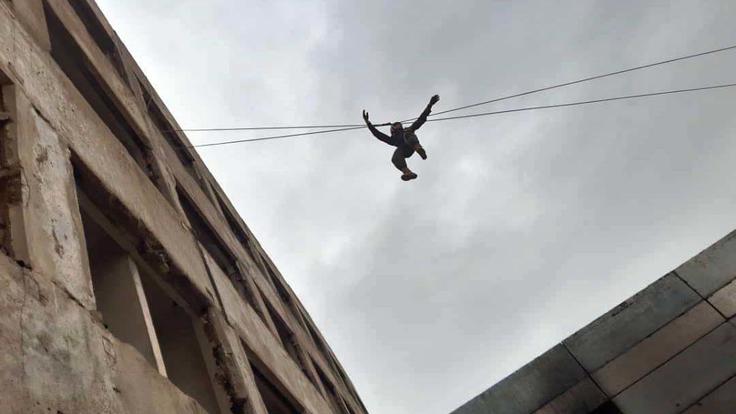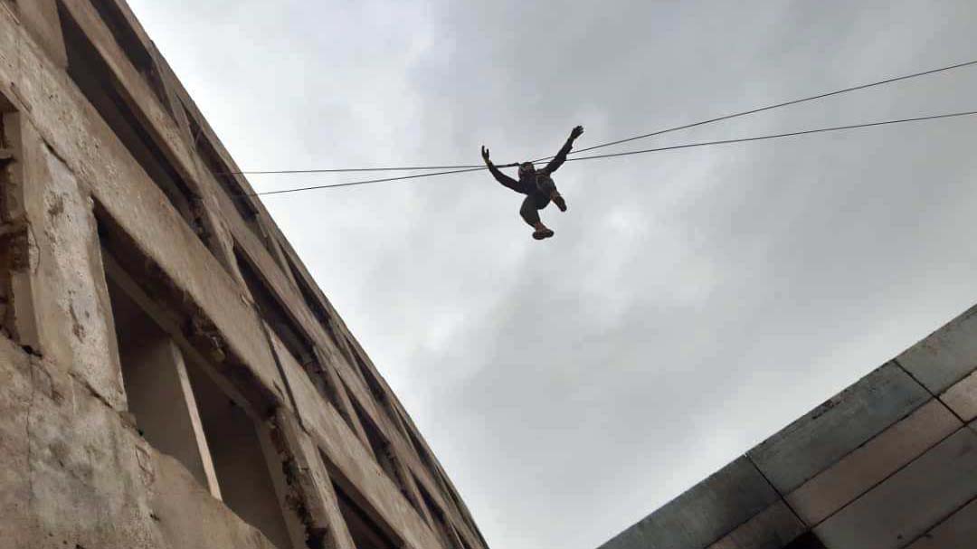 Спасатель из Комитета по чрезвычайным ситуациям и гражданской обороне Таджикистана во время практических занятий в г. Бохтар, Хатлонская область, 2 марта 2021 г.