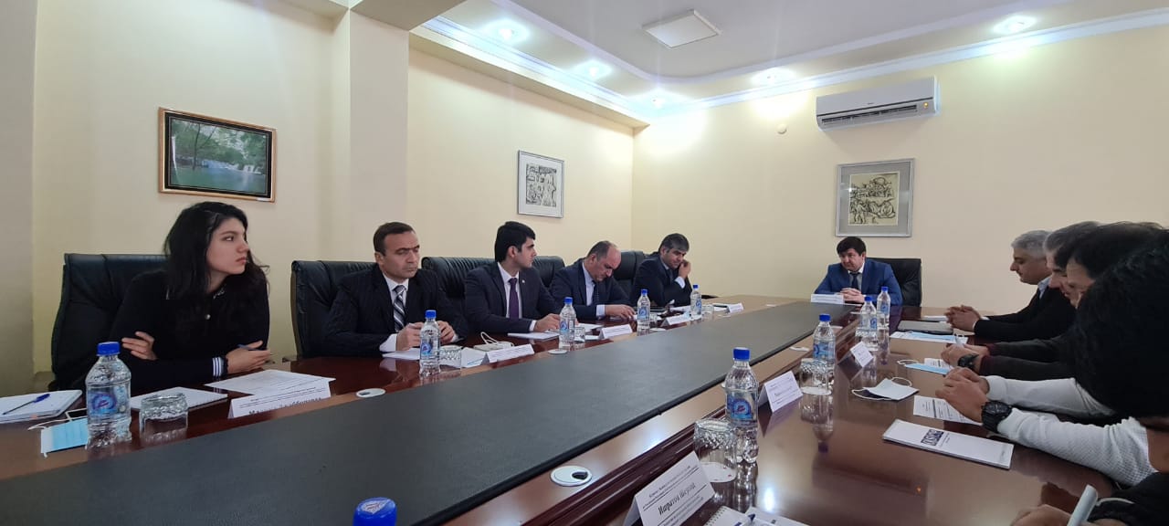 Участники обзорной встречи по выполнению Национального плана действий Таджикистана в рамках резолюции 1540 Совета Безопасности ООН о нераспространении оружия массового уничтожения, Гулистон, Согдийская область, 12 ноября 2021 года.