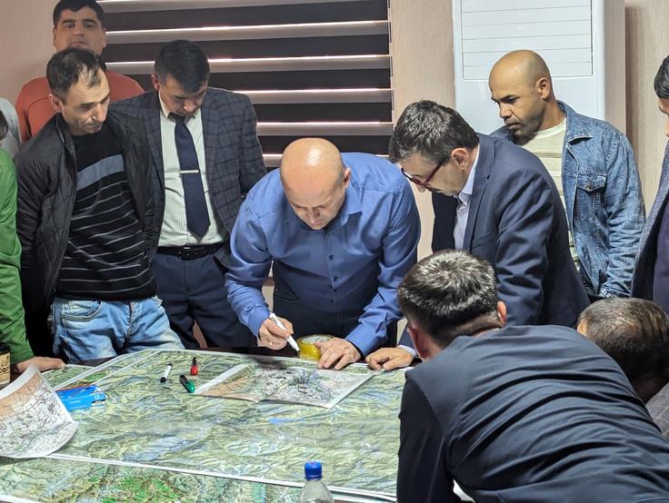 Офицеры штаба Пограничных войск Республики Таджикистан на втором учебном курсе по оперативному планированию для Пограничных войск Республики Таджикистан в Бохтаре, Хатлонская область, 23 ноября 2023 года.