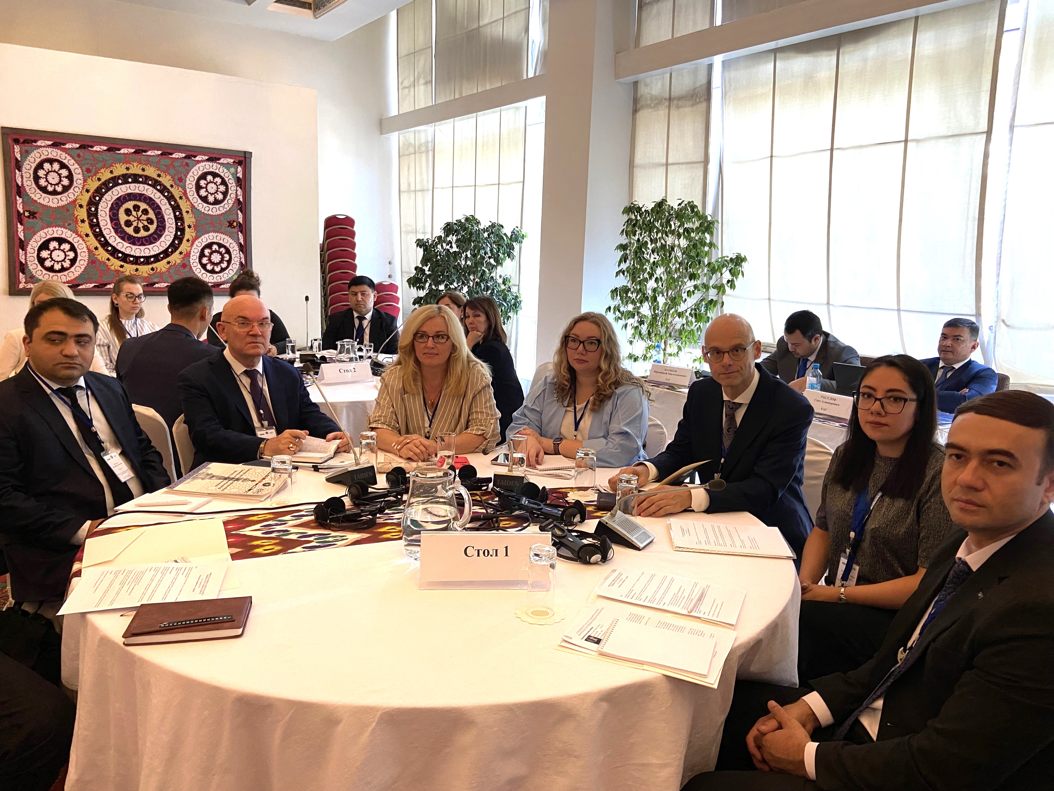 Участники международного семинара по стандартам Группы разработки финансовых мер борьбы с отмыванием денег, организованного Национальным банком Таджикистана при поддержке Программного офиса ОБСЕ в Душанбе, 24 сентября 2024 года.