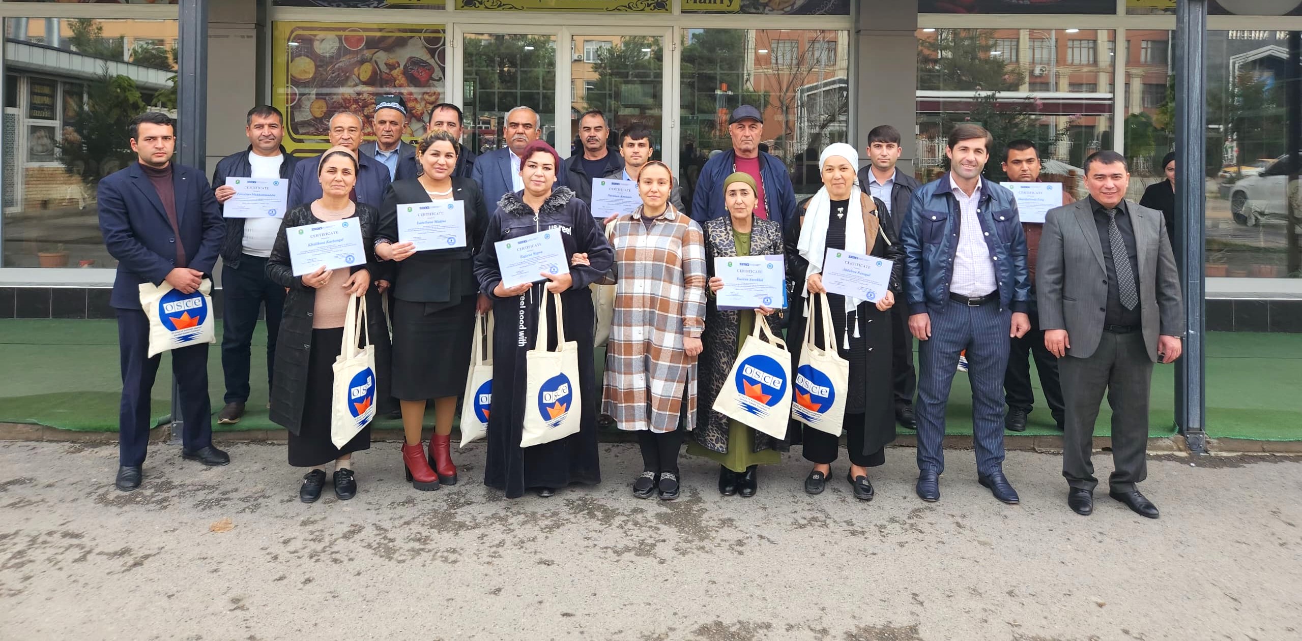 Специалисты по управлению водными ресурсами позируют для группового фото во время трехдневного тренинга, посвященного разработке стратегических документов по руководству и управлению водными ресурсами, Бохтар, 1 декабря 2024 г.