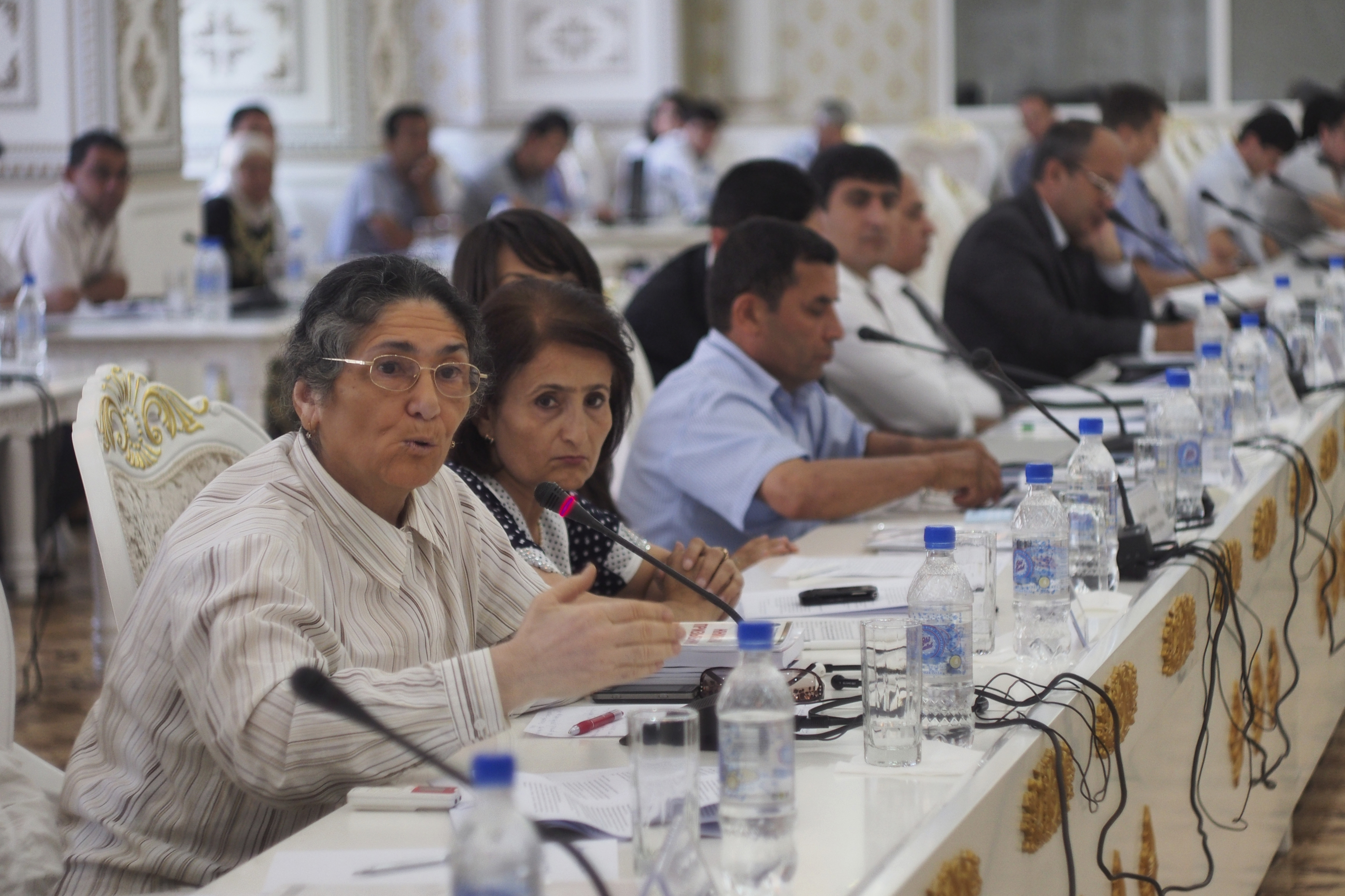 Oinihol Bobonazarova, Director of the non-governmental organization Perspectiva Plus, discusses practical challenges to the award of compensation as a form of redress for rights abuses, Dushanbe, 3 July 2013.