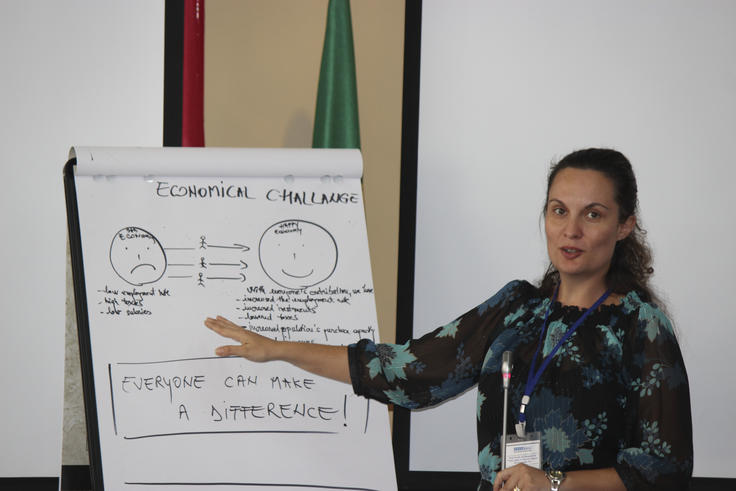 Giorgiana Dumitru, Border Professional from Romania, presents the results of group work conducted at the Leadership and Management session