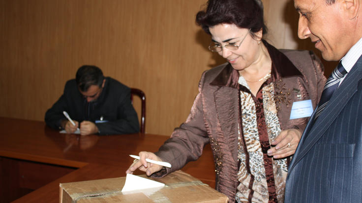 Journalist voting at the constituent assembly of the TCM, 30 November 2009.