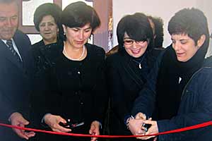 A ribbon-cutting ceremony marks the opening of a shelter for women and children victims of violence, refurbished with support from the OSCE Office in Tajikistan, Khujand, 9 February 2010.