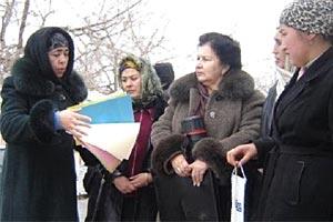 Women's Resource Centre activists hold a grassroots voter education session on a street in Penjikent, Tajikistan.