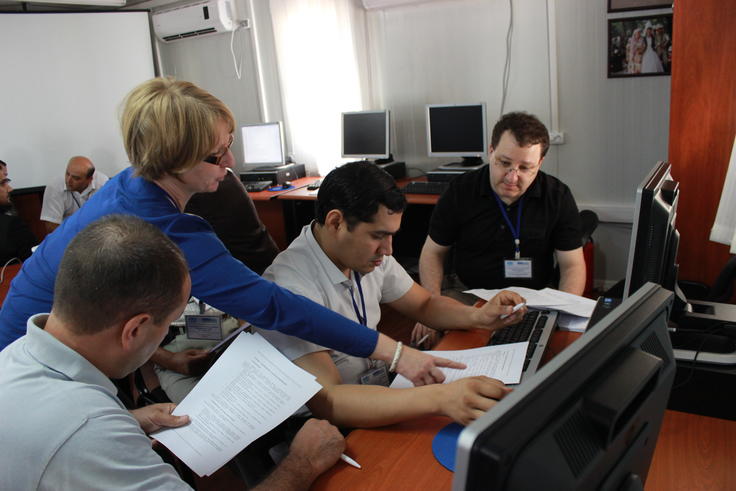 Participants engaged in a discussion during one of the working groups. Dushanbe, 21 July 2014.