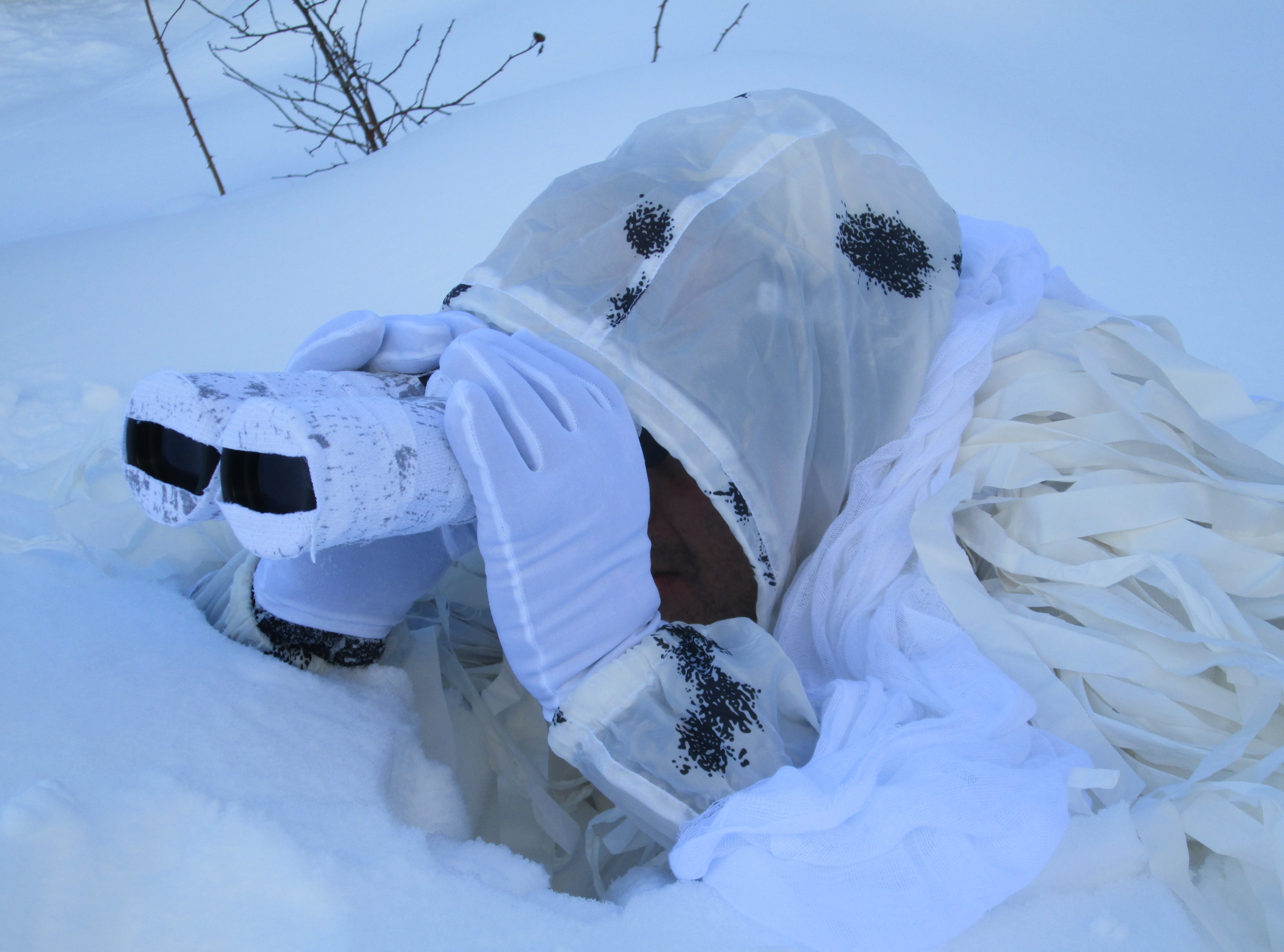 Tajik Border Troops officer conduct a winter camouflage exercise during a two-week training course on search and rescue, Khoja Obigarm, 1 February 2016.