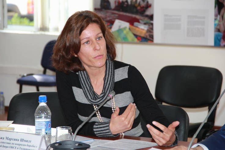 Martina Schmidt, Senior Anti-Corruption Officer of the OSCE Office in Tajikistan, speaking at a co-ordination meeting with government stakeholders on anti-corruption activities, Dushanbe, 26 February 2016.
