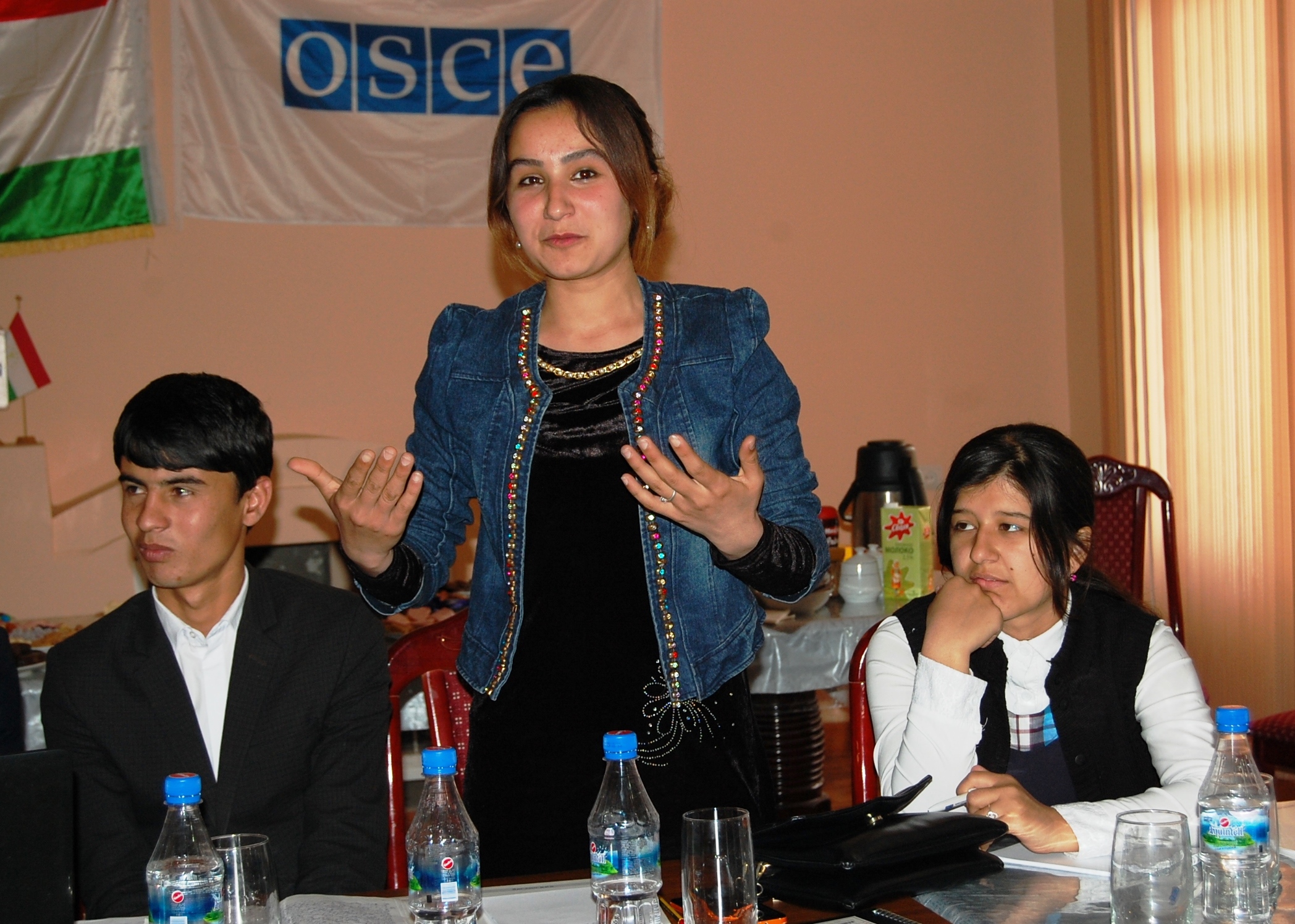 Young journalists from Kurgan-Tyube during an OSCE organized workshop on the role of independent, pluralistic and professional media, 29 February 2016.