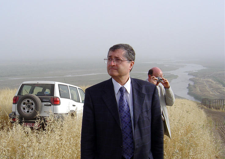 Ambassador Yves Bargain, Head of the OSCE Centre in Dushanbe, at the Moskovsky post of the Tajik-Afghan border, 24 May 2004.