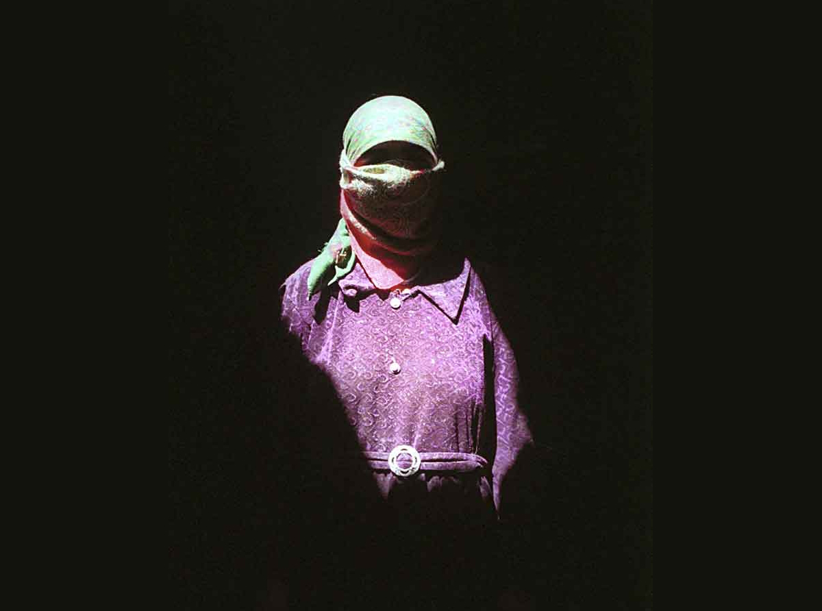 A Tajik woman covers her face. Women's economic dependence in Tajikistan is one of the roots of domestic violence.