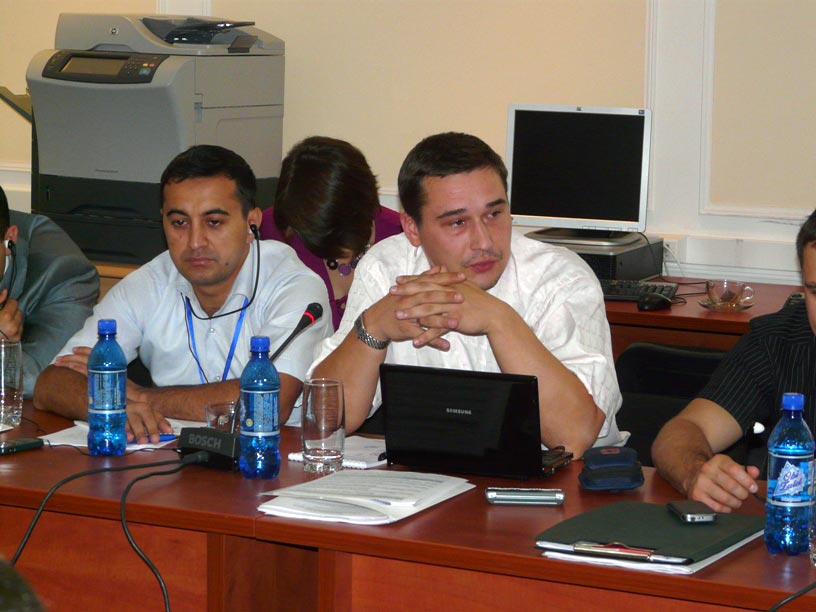 Lt-Col. Lapko Yura (r), Belarus Border Service and Maj. Rahimov Bakhtiyor, Tajik State National Security Committee at a course on human rights and border control organized by the OSCE Border Management Staff College and ODIHR, Dushanbe, 13 September 2010.