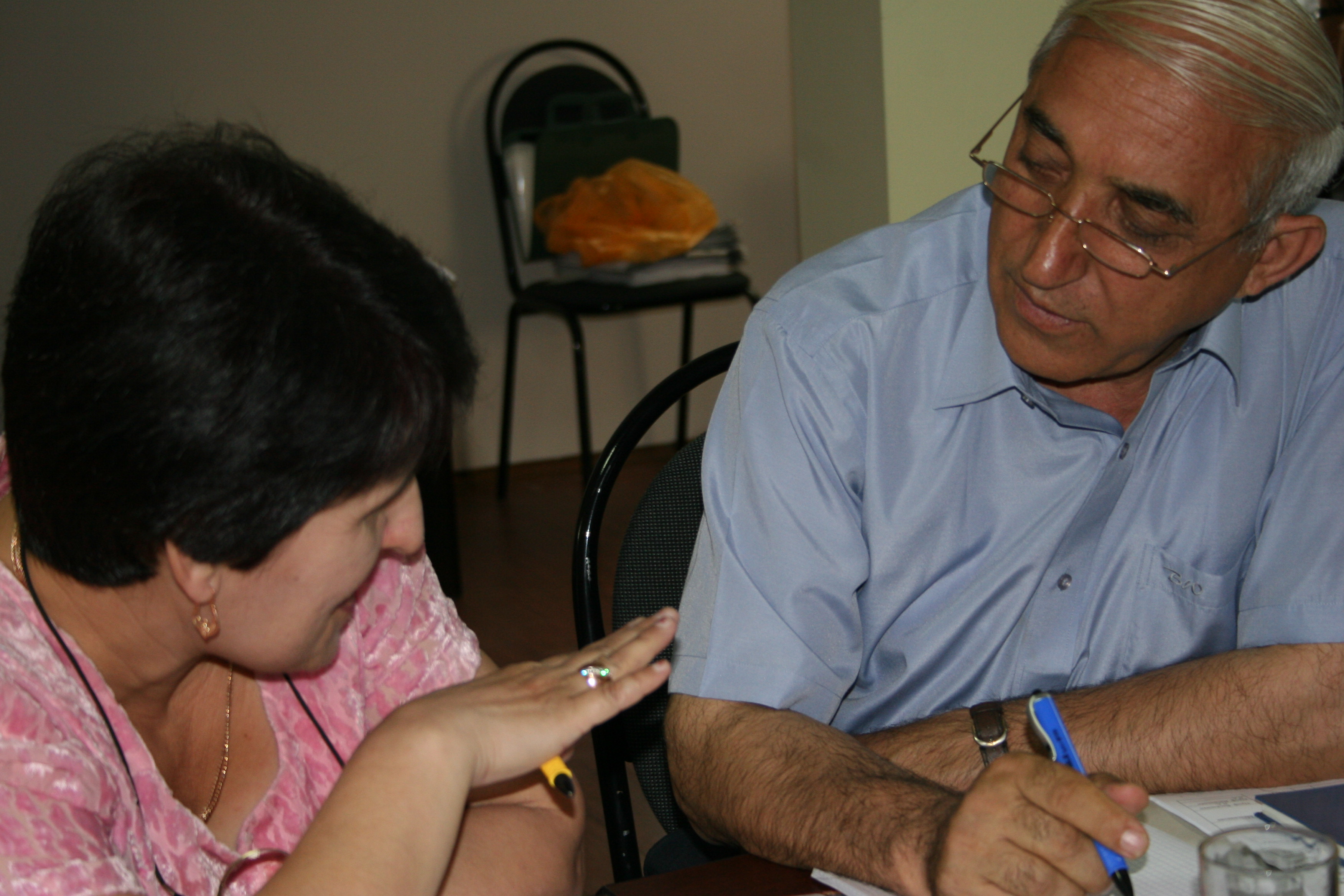 Members of the Tajik Parliament discuss ways to improve the implementation of current legislation ensuring equal rights and opportunities for men and women during an OSCE-organized training session, Dushanbe, 30 June 2007.