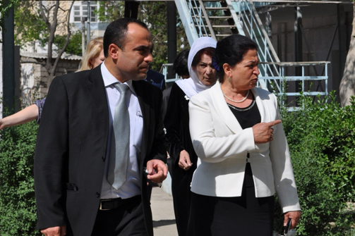 Mavjuda Boboeva, Chairperson of the Sughd Region Interagency Commission to Combat Human Trafficking, shows Ahtam Abdulloev, Secretary of the Government of Tajikistan Interagency Commission to Combat Human Trafficking, the premises of a Khujand shelter for at-risk children, 13 April 2011.