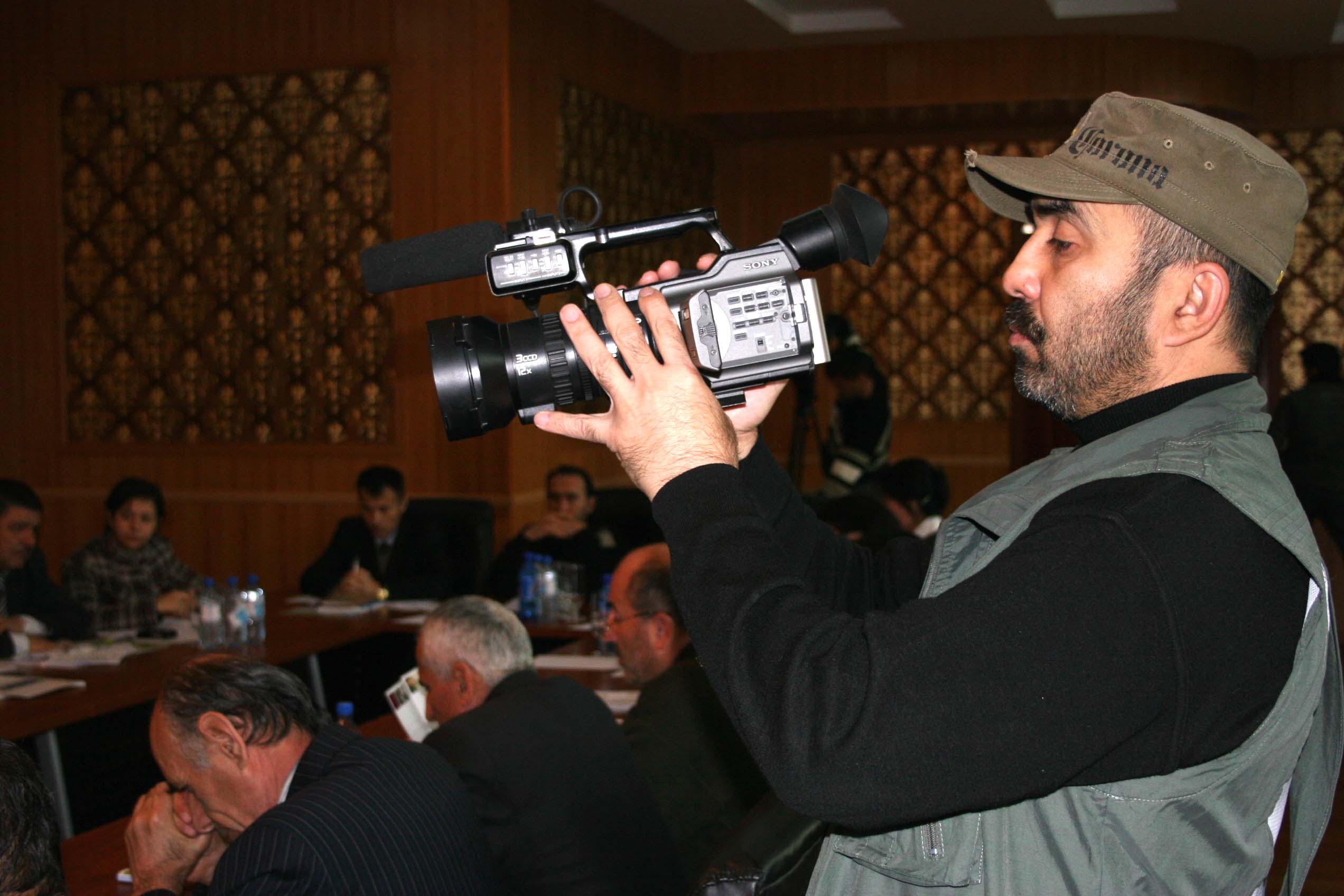 A cameraman covers a seminar on increasing public access to official information, organized by the OSCE Representative on Freedom of the Media and the Presidential Administration and supported by the Centre in Dushanbe, 11 December 2007.