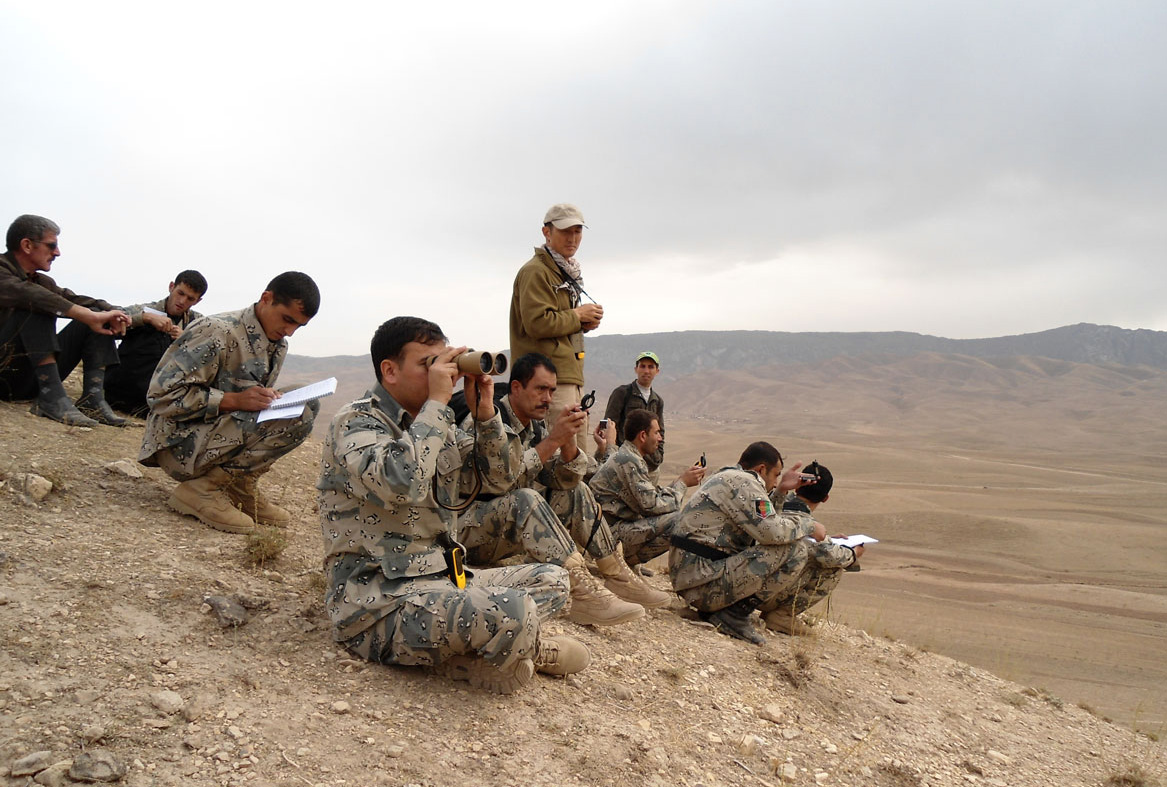Border police trainees from Afghanistan, in a field exercise at Lahur, Southern Tajikistan, October 2011.
