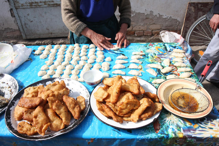 Food prepared at a market near Kurgan Tube in southern Tajikistan, 29 February 2008.