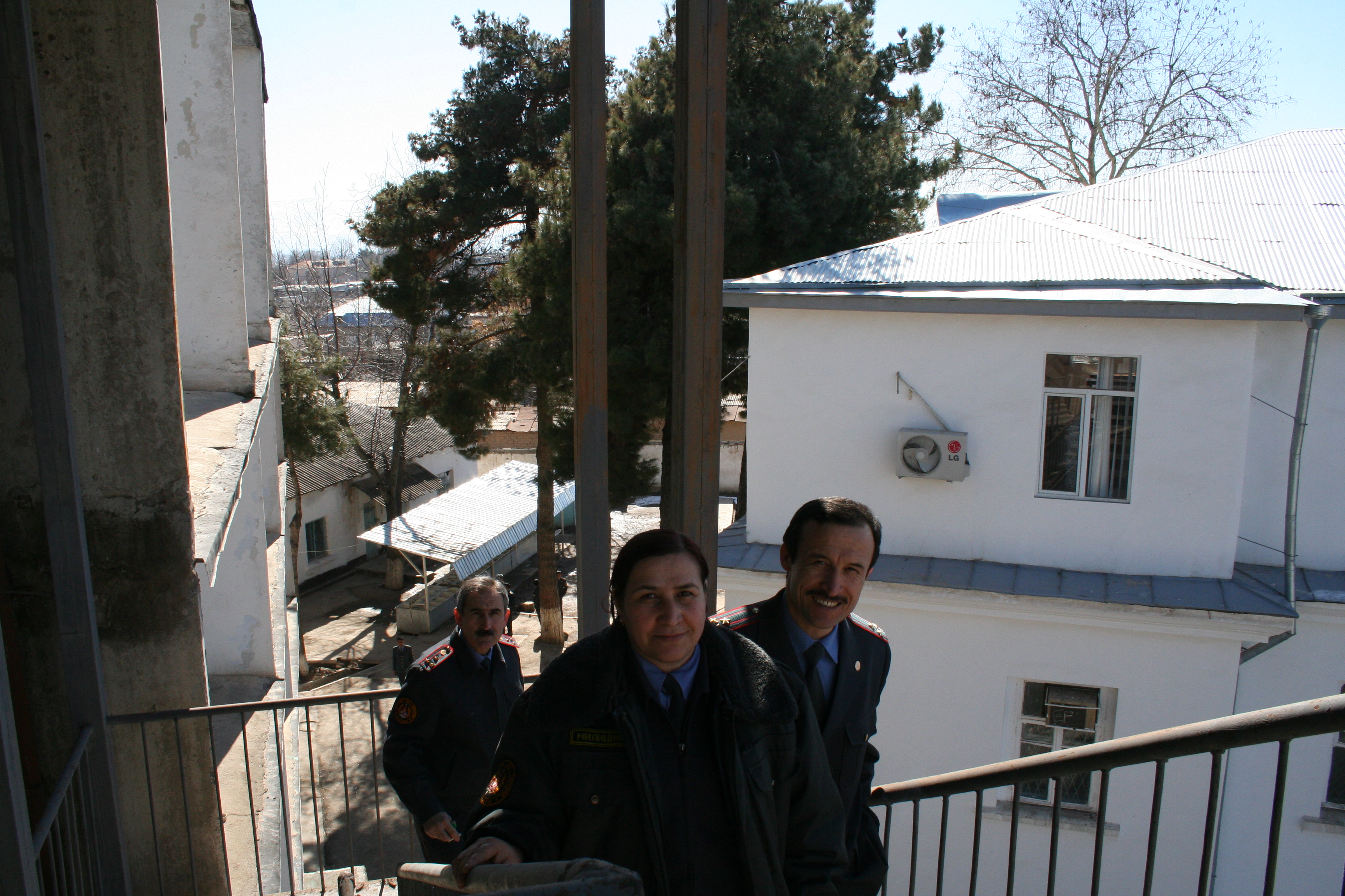 Staff from the Police Academy in Dushanbe welcome visiting OSCE experts, February 2008.