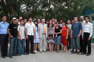 University students and NGO staff at the start of a week-long international human rights workshop in Varzob, near Dushanbe, with Ambassador Vladimir Pryakhin, head of the OSCE Office in Tajikistan (centre), 24 July 2008.