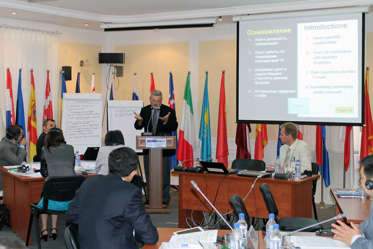 Participants at an international forum on border management in humanitarian emergencies held at the OSCE Border Management Staff College, Dushanbe, 24 September 2012.