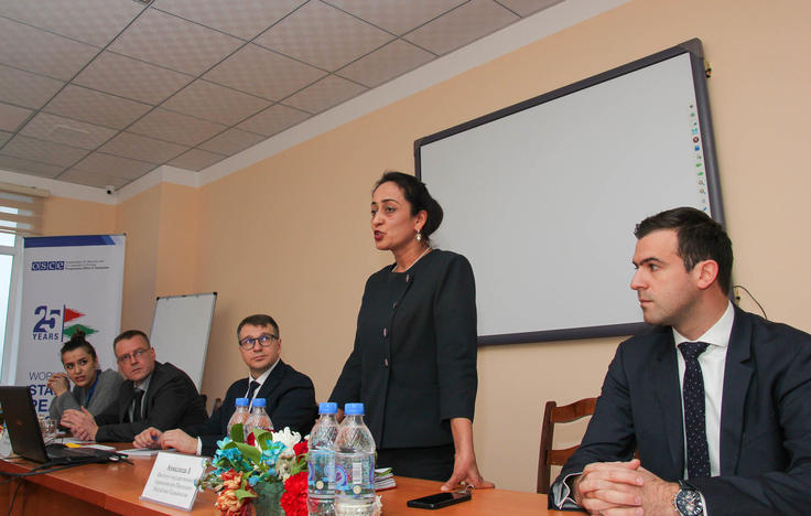 Аҳмадзода Зулфия, ноибректори Донишкадаи идоракунии давлатии назди Президенти Тоҷикистон ҳангоми муроҷиаташ ба иштирокдорони тренинг, Душанбе, 18 декабр 2019.