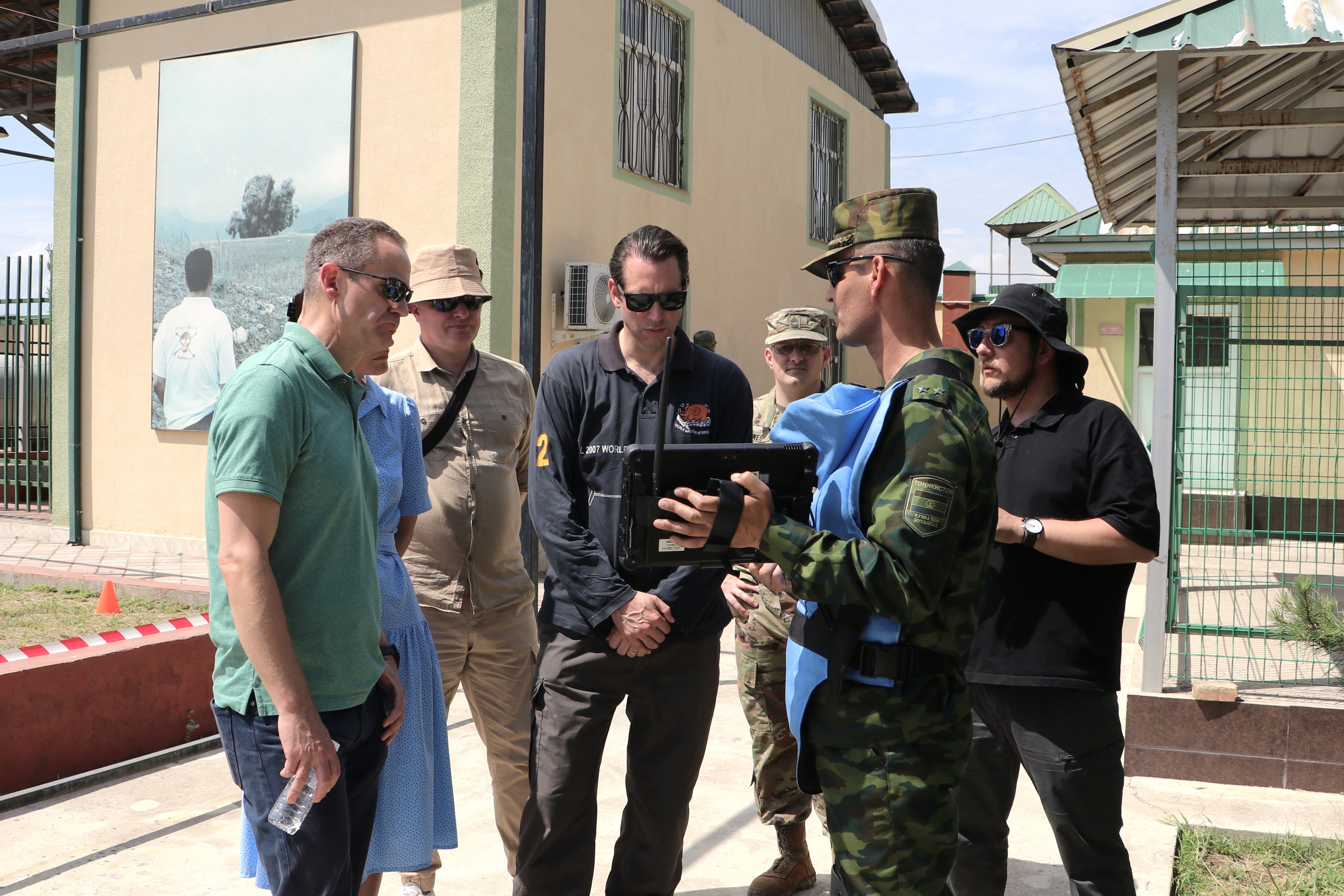 Мушовирони низомии Намояндагии доимии Ҷумҳурии Федеративии Олмон дар САҲА дар Вена, Намояндагии Британияи Кабир дар САҲА дар Вена ва намояндаи Шӯъбаи дастгирии Форуми ҳамкориҳои амниятии Маркази пешгирии низоъҳои САҲА. Боздид аз Маркази таълимии минтақавии безараргардонии маводи таркандаи Вазорати мудофиаи Ҷумҳурии Тоҷикистон, Чимтеппа, Ҷумҳурии Тоҷикистон, 21 майи соли 2024.