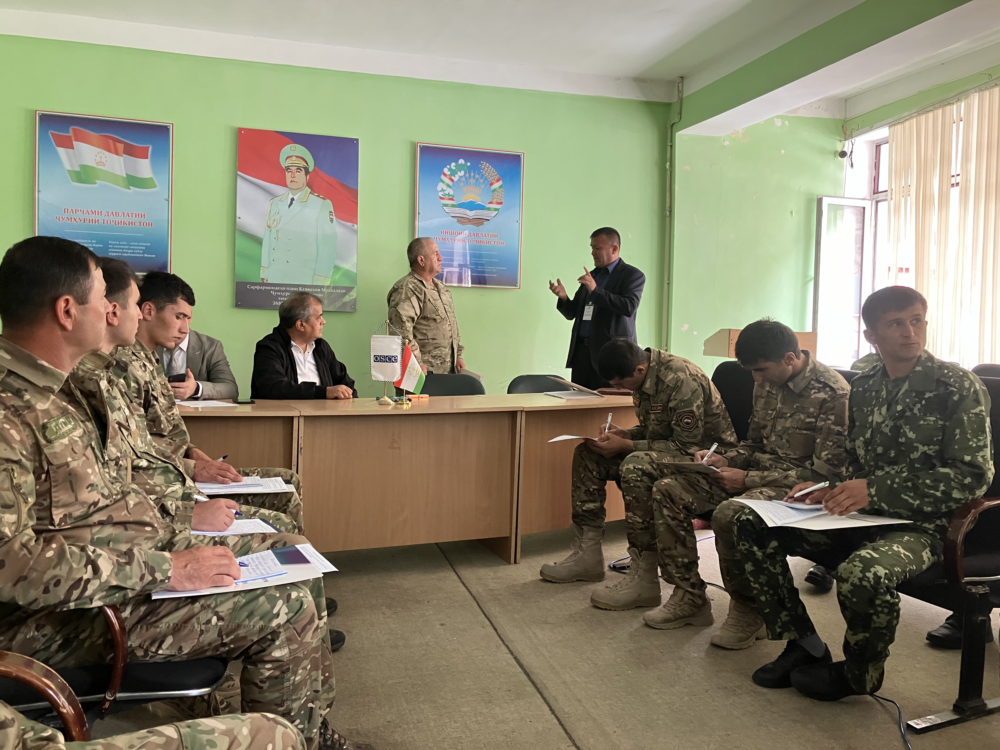Кормандони хадамоти кинологӣ ва кормандони Раёсати ҷустуҷӯ ва наҷотдиҳии Кумитаи ҳолатҳои фавқулодда ва мудофиаи граждании Ҷумҳурии Тоҷикистон, инчунин Маркази К-9-и Вазорати корҳои дохилӣ дар курси таълимии серӯзаи минтақавӣ дар Хоруғ, 21 июни соли 2024.