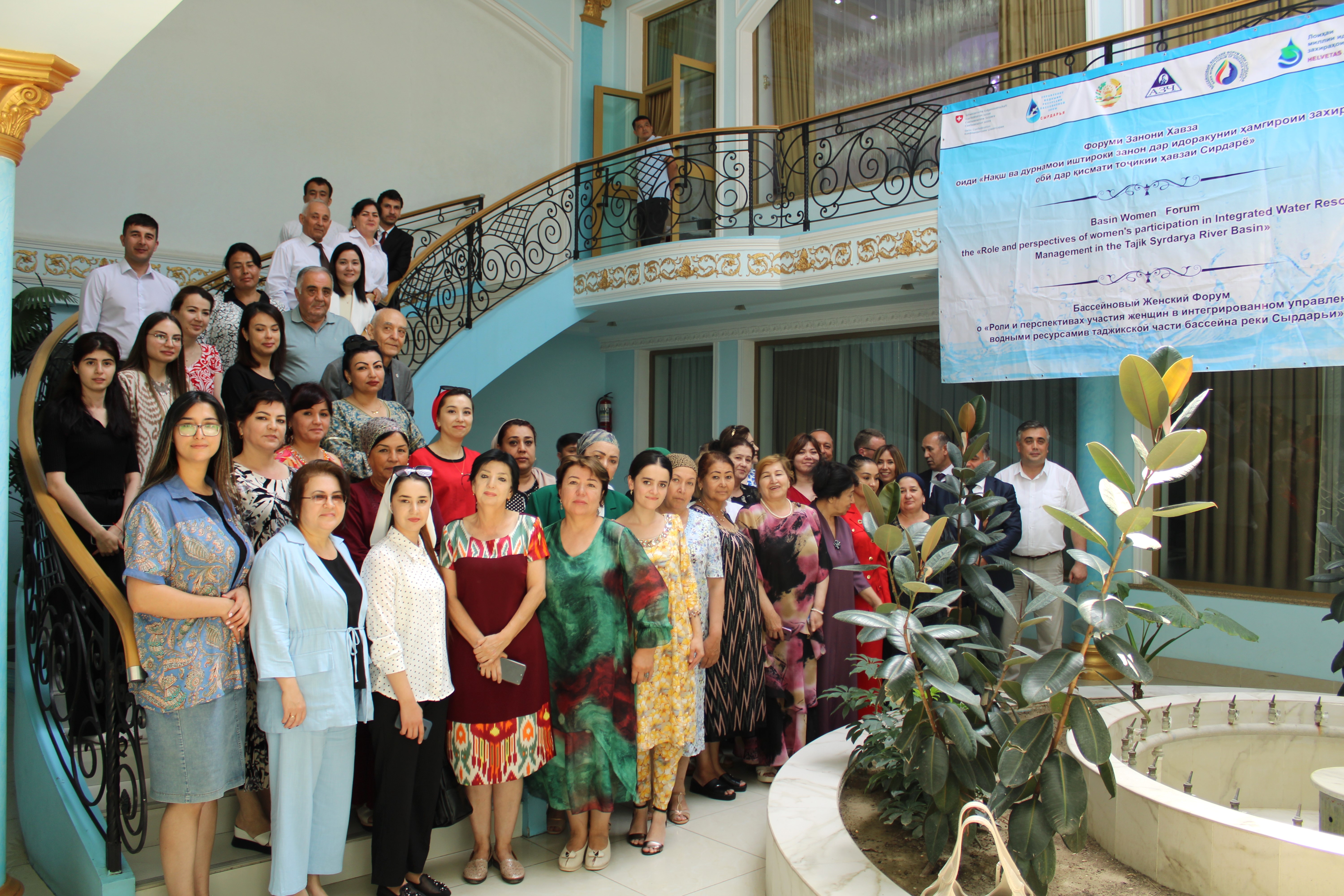 Иштирокчиён зимни аксбардории гурӯҳӣ дар Форуми 9-уми занони ҳавзаи Сирдарё ва Шӯрои 7-уми ҳавзаи Сирдарё, ки дар ҳамкории Дафтари барномаҳои САҲА дар Душанбе ва ҲЕЛВЕТАС баргузор гардид, Хуҷанд, 25 июни соли 2024.